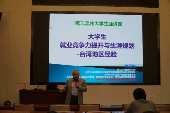 为浓厚学院学术文化氛围,提升学院就业育人工作质量,12月25日,教育学院特邀台湾修平科技大学黄茂荣教授,在南校区科技综合大楼作题为《大学生就业竞争力提升与生涯规划——台湾地区经验》的专题报告。学院各年级学生代表到场聆听,陈为峰副教授主持活动,师生围绕就业与人才培养展开深度交流。