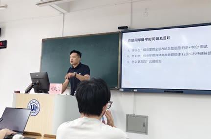 基于此,刘老师也讲述了国考与浙江省省考的主要科目——行测和申论,其中行测题量最大,题目类型最多,相对而言难度较大。老师同时指出,除了公职类考试,我们也可以把视线放长远,可适当考虑企业事业单位的选择,如国家电网,烟草等等,这些工作单位的待遇、环境等也都值得我们为之努力。