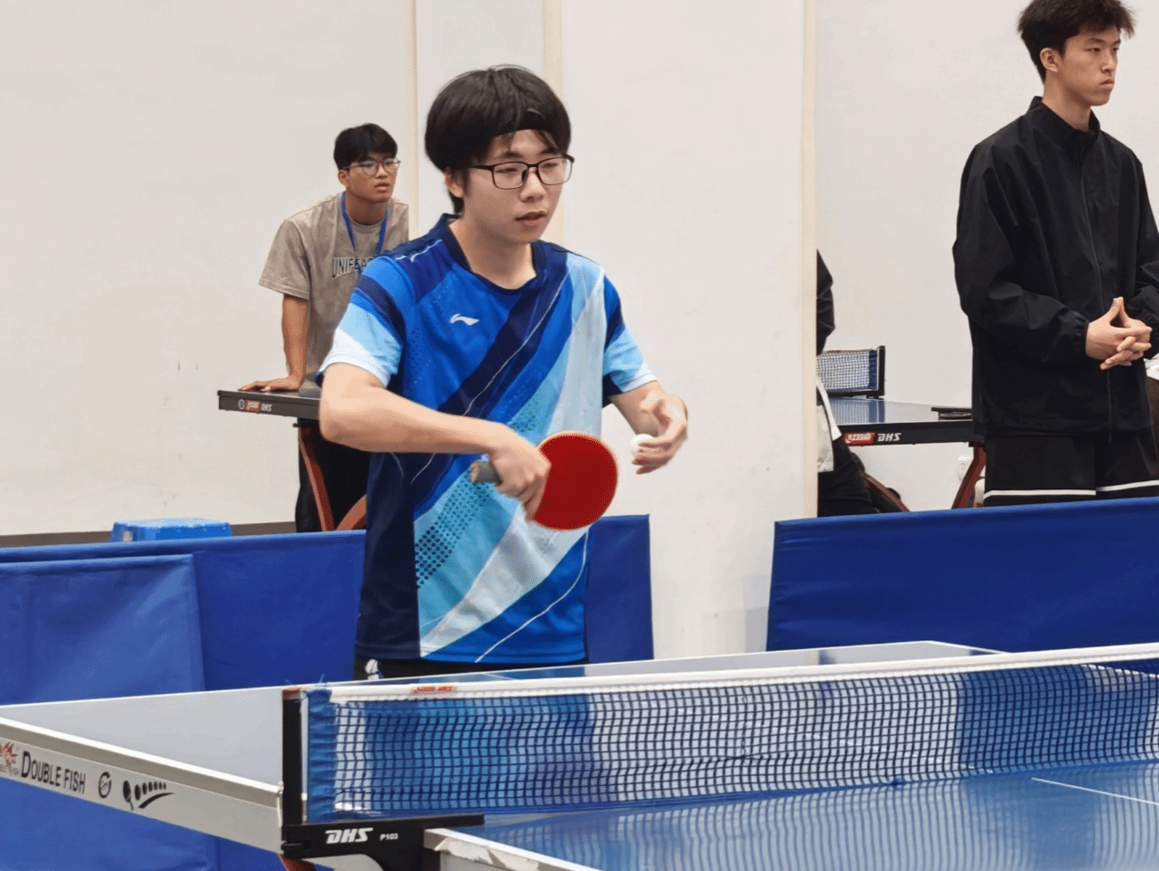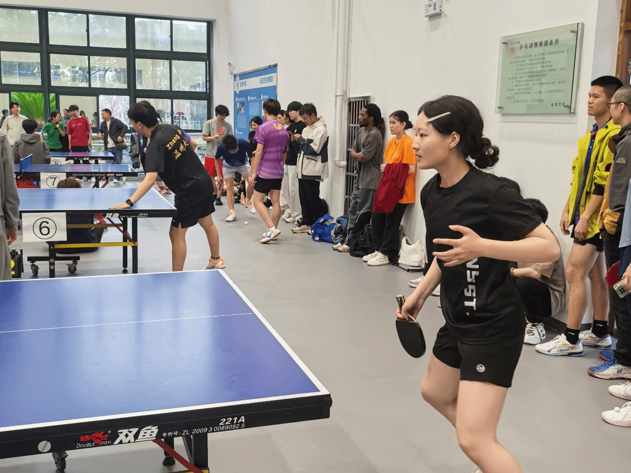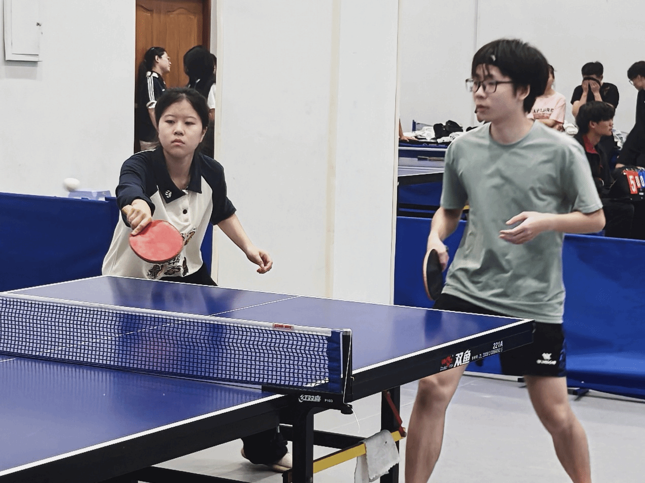 比赛现场,教育学院参赛选手们精神抖擞、斗志昂扬。发球时的精准把控、接球时的敏捷反应、对拉时的默契配合,每一个动作都尽显专业与专注。直板的灵活刁钻、横板的沉稳有力,选手们充分发挥自身技术优势,时而近台快攻、时而远台对拉,小小的乒乓球在球台上来回穿梭,划出一道道灵动的弧线。
