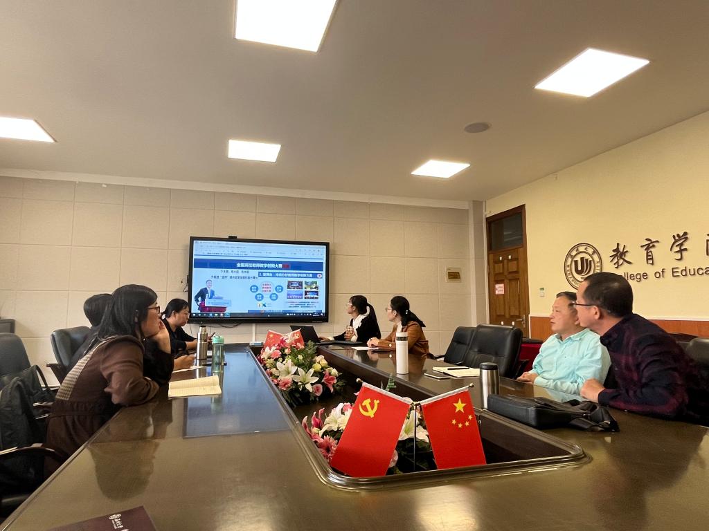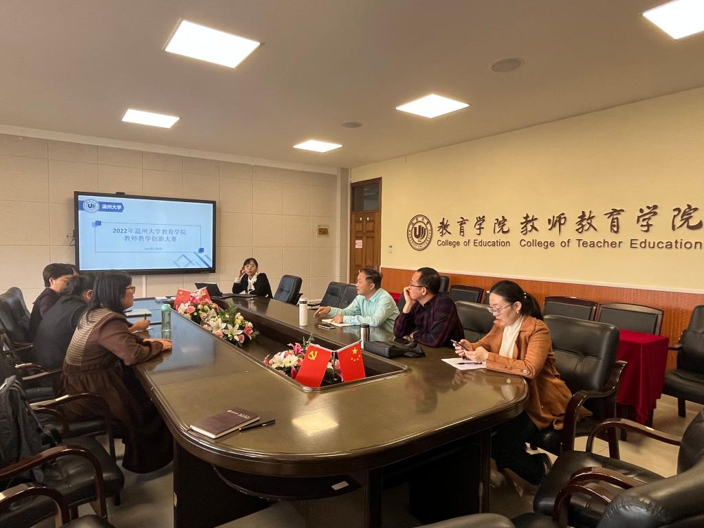 为有效推进教学改革,加强专业建设,打造高质量教师队伍,按照太阳集团tyc234cc第三届教师教学创新大赛的相关要求,2022年11月9日下午,教育学院于在9A410会议室,开展了教师教学创新大赛院级选拔赛。本次选拔活动由教育学院副院长叶新东主持,6位参赛教师积极参加。