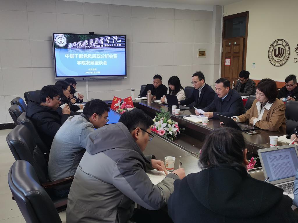 为高质量开好2022年度学院领导班子专题民主生活会,多层面征求师生对新学年学院建设发展的意见建议,科学谋划2023年学院各项工作,在前期形成基础调研材料的基础上,学院于2月19日-2月21日分别召开中层干部党风廉政分析会暨学院发展座谈会、行政科室负责人座谈会、引进人才及青年博士代表座谈会、民主党派人士代表座谈会和学生代表座谈会等系列专题会议,深入师生群体广泛听取对学院发展和领导班子成员的意见建议,科学谋划学院事业发展新局面。