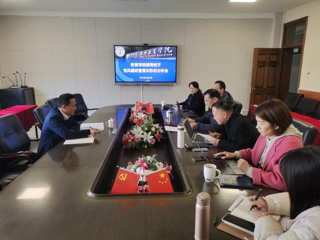 2023年2月23日下午,教育学院在茶山南校区9号楼A410会议室召开2022年下半年党风廉政分析会暨意识形态分析会,副校长王舜出席会议并指导讲话,学院领导班子成员参加会议。会议由学院党委书记何毅主持。