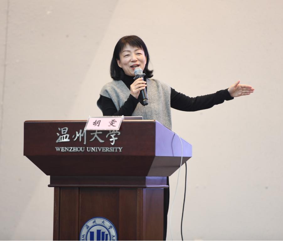 胡雯老师以《“语润疆土”西行杂谈》为题,深情地回顾了自己在阿克苏教育学院的支教经历。为圆青年时许下的梦想,胡雯老师欣然开启了她西行之旅。因为语言文字方面的特长,胡雯老师除了顶岗教学工作任务,还承担起了阿教院国家语言文字推广基地的主要工作。她起草《普通话教程》的课程标准和教学大纲,帮助阿克苏教育学院普通话实训课程提质增效;起草阿教院国推基地的当年规划和五年规划,通过教育部的审核,引导国推基地运行走上规范化运行的轨道;采用线上线下相结合的方式,为阿克苏地区学前、中小学、高校高职教师开展11个主题25个讲座,推广普通话,弘扬中华传统文化;发挥“组团式”援疆的工作优势,组建“语润浙疆”团队,领衔开展送经典下基层活动,让“经典润乡土”走进阿克苏各县市区,为地市乡镇学校带去经典示范展示和互动文化体验。胡雯老师还组织并策划阿教院首届教师朗诵大赛,锻炼教师教学基本技能;开放课堂,发挥教学上的引领示范作用;师徒结对,指导刚踏上讲台一年的徒弟获得教学一等奖,指导另一个徒弟首次获得教科研课题立项;选拔指导师生朗诵节目,获阿克苏地区“喜迎党的二十大朗诵比赛”一等奖……