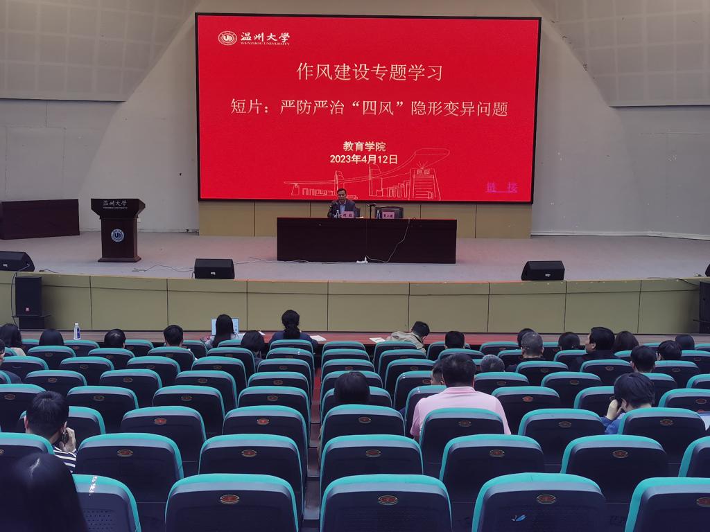 4月12日下午,教育学院在9号楼一楼报告厅召开教职工大会。学院全体教职工参加,会议由学院党委书记何毅主持。