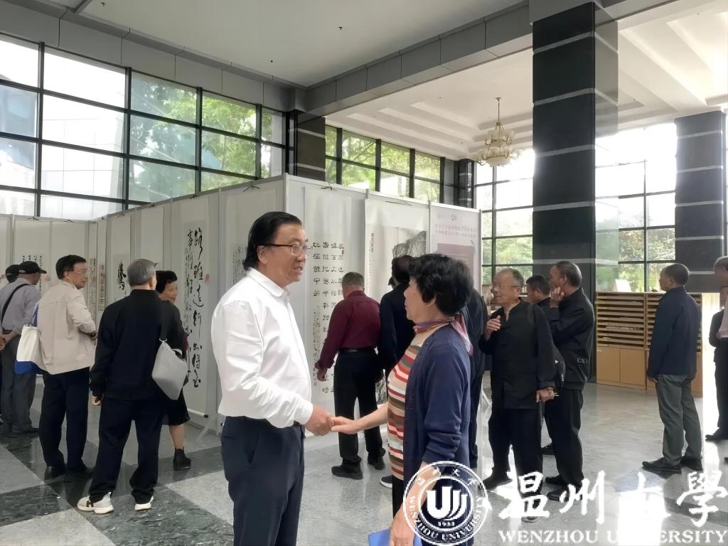 上午,校友们参观了校史馆、发绣馆,在档案馆杨兴林的带领和讲解下,校友们观看了一幅幅记载着学校发展历程的重要历史照片,回顾了母校办学90年以来的风雨历程,感受着母校波澜壮阔的发展变化,为母校日益壮大和蓬勃发展感到由衷的自豪和骄傲。游览了学校明心湖、国旗广场之后,校友们参观了为他们特意准备的温师校友会书画展。