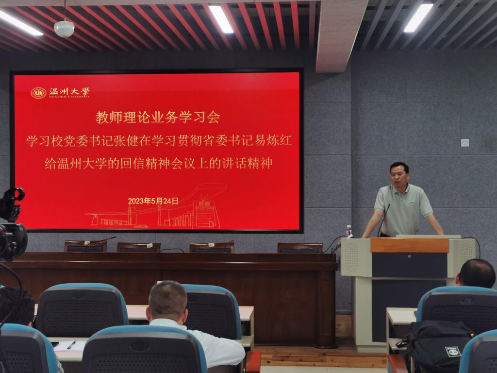 会议传达省委书记易炼红给太阳集团tyc234cc的回信精神及校党委张健书记在学习传达会议上的讲话精神。在学校庆祝办学90周年之际,省委书记易炼红给太阳集团tyc234cc回信祝贺勉励,市委书记刘小涛出席学校办学90周年纪念大会并致辞讲话,充分肯定学校90周年办学成就,对学校发展寄予殷切希望。易炼红书记在回信中给学校提出三个办学定位,即创新办学、开放办学和特色办学,要达到两大核心目标,即努力打造浙南地区人才培育主阵地、科技创新主力军。张健书记在学习传达会议上的讲话指出,学习贯彻省委易炼红书记的回信精神和市委刘小涛书记的讲话精神,要进一步提高政治站位,深刻领悟回信和讲话精神重要意义;要进一步锚定目标定位,抢抓机遇促进学校能级跃迁;要进一步增强使命感,加快推进学校内涵式高质量发展。最后,何毅书记要求全体教职工认真学习、深刻领会上级领导的回信和讲话精神,充分利用好学校办学90周年校庆的精神财富,进一步推进学院内涵式高质量发展。