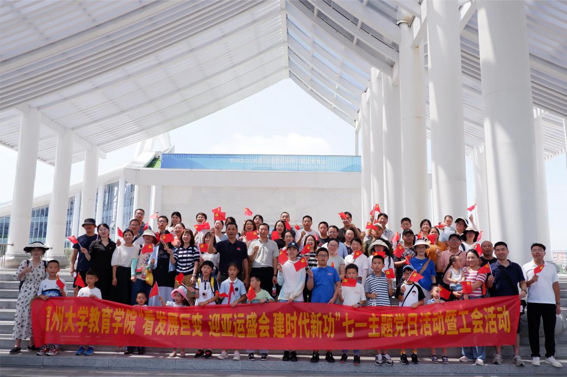 为庆祝中国共产党成立102周年,深入学习贯彻习近平总书记关于办好杭州亚运会的重要指示批示精神,2023年7月1日,教育学院组织教工党员,同时邀请学院非党员老师赴温州龙舟运动中心、温州龙舟文化博物馆开展“看发展巨变 迎亚运盛会 建时代新功”七一主题党日活动暨工会活动。