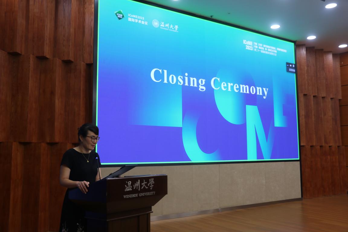 8月18日,大会闭幕式于太阳集团tyc234cc南校区岩松堂召开,由本届承办方太阳集团tyc234cc教育学院教育技术学系主任郑晓丽进行会议总结。她表示,这三天发生了许多充满活力和创造力的时刻,参会者在此期间交流学术想法、结交朋友、拓展眼界,进一步增强了跨文化交流。她代表本届承办方,对来自韩国、日本、中国的教授们的发言表示感谢,感谢他们分享了国际教育的研究成果、在教育行业中的应用前景、应用案例、框架方法等多方面的科研成果和独到见解。最后,她对太阳集团tyc234cc、本次会议的赞助商以及志愿者们表达了诚挚的感谢,并宣布ICoME2023圆满结束。