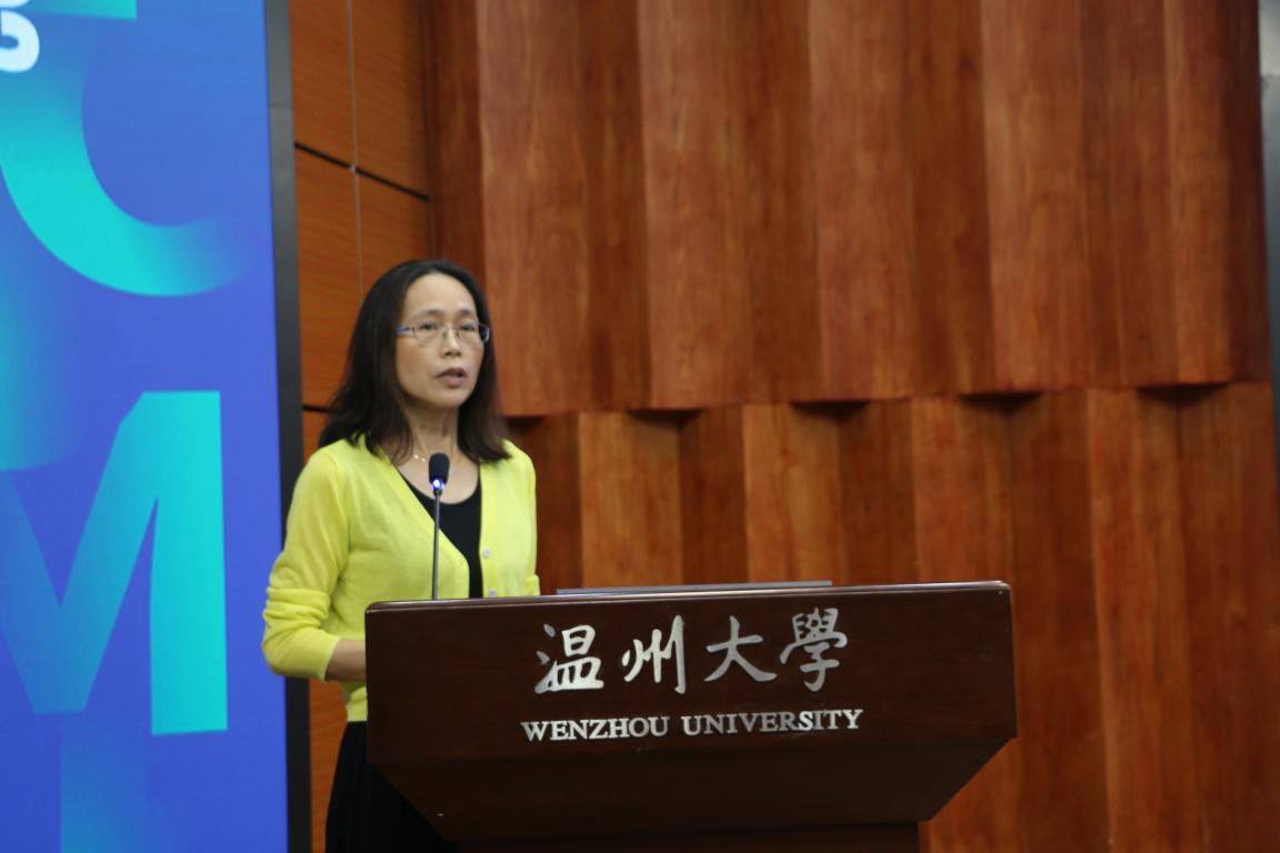 日本明治大学教授Makiko Kishi代表ICoME2024日本承办方对ICoME2024进行宣传介绍。她表示,ICoME2023大会极具凝聚力、吸引力和创造性,太阳集团tyc234cc的所有朋友们亲切热情,大会氛围十分愉快。随后,Makiko Kishi教授依次播放了日本明治大学学校宣传视频与国际日语研究学院宣传视频,发放了明治大学的宣传手册,并对在场所有人发出热情邀请,期待2024年与大家在日本相见。