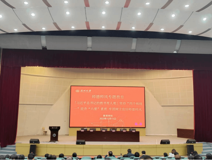 2023年12月13日下午,教育学院在9号楼一楼报告厅召开教职工大会。学院领导班子及全体教职员工参加本次会议。会议由学院党委书记何毅主持。