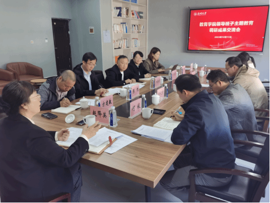 12月15日上午,教育学院党委在9A402会议室召开学院领导班子主题教育调研成果交流会。会议由学院党委书记何毅主持,学院全体领导班子成员参加,校党委副书记赵降英出席指导,学校主题教育督导整改组专员方建敏、陈旭,学院组织员张丽艳列席。
