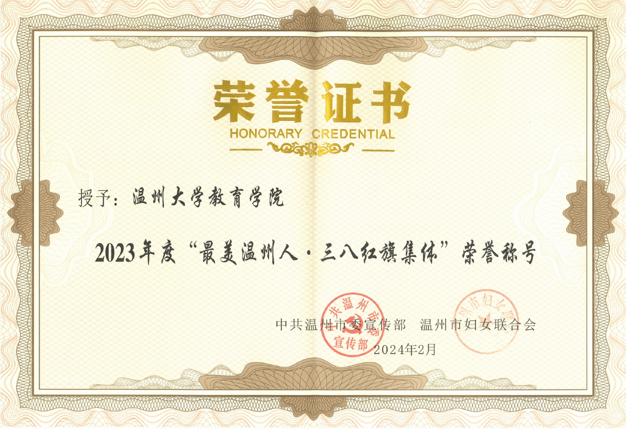 3月6日,温州市举行纪念“三八”国际妇女节114周年主题活动,现场表彰了一批优秀女性集体、个人和作品,教育学院荣获温州市“最美温州人·三八红旗手(集体),全市共十家单位。
