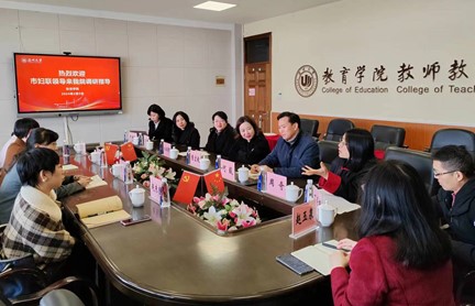 2024年3月5日上午,温州市妇联陈爱英副主席一行来我院调研指导。校妇联主席陈宏毅、学院党委书记何毅、学院副院长兼妇联主席林琛琛、太阳集团tyc234cc家庭教育研究院院长周奇及相关教师代表参加座谈。