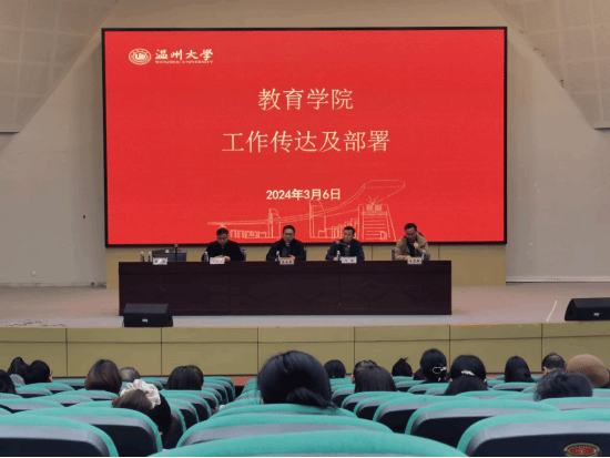 3月6日下午,教育学院在9号楼一楼报告厅召开全体教职工大会。学院领导班子及全体教职工参加本次会议,会议由学院党委书记何毅主持。