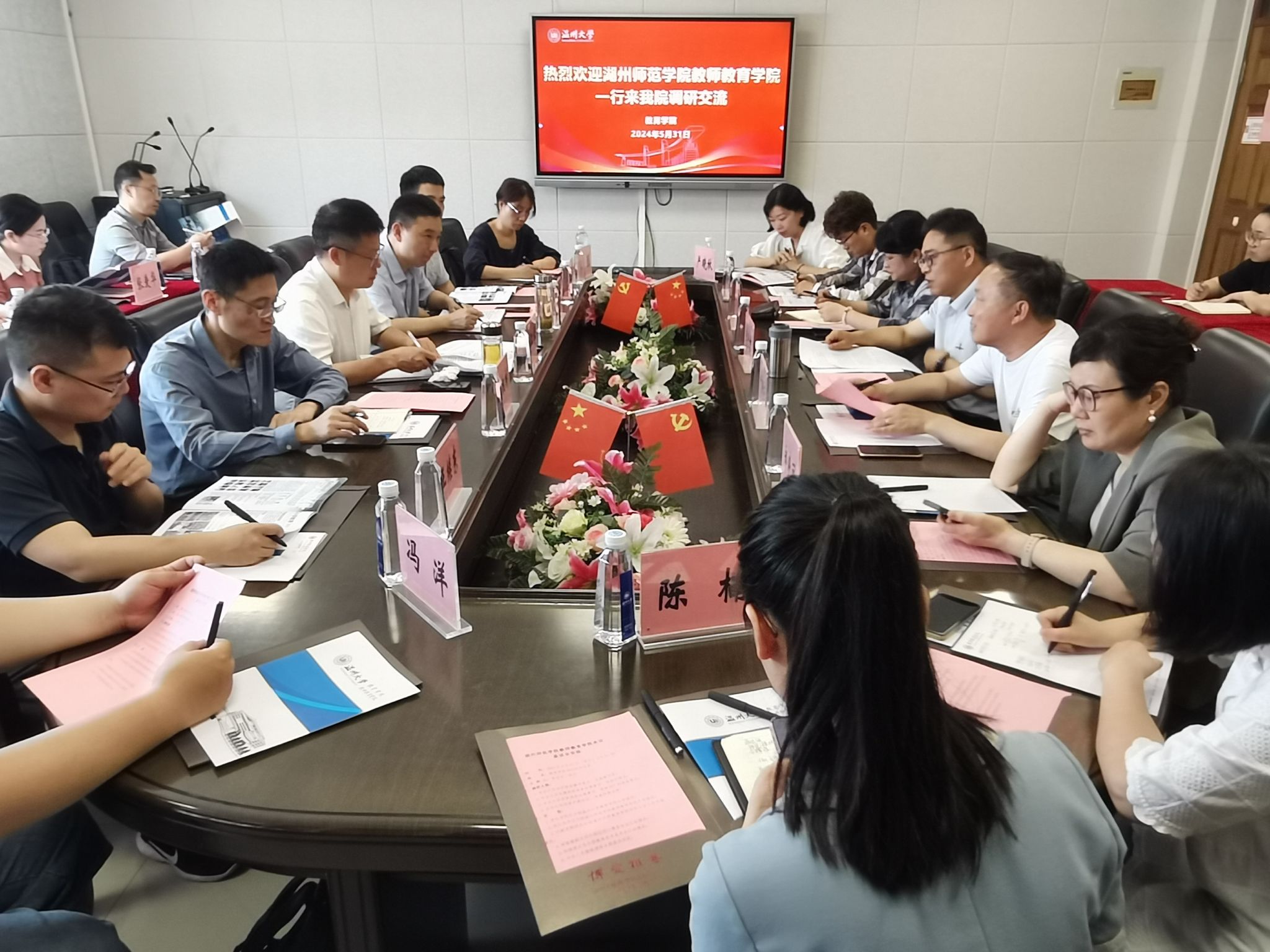 5月31日上午,湖州师范学院太阳成集团tyc234cc党委书记沈江龙、副院长李茂森等一行来我院调研交流。学院院长李长吉,副院长叶新东、林琛琛,相关系所(科室)负责人参加座谈交流。