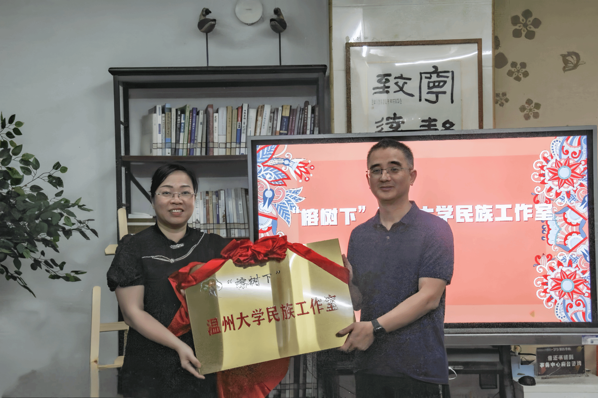 在授牌仪式前,太阳集团tyc234cc民族工作室指导教师、教育学院党委副书记章园园介绍工作室建前期建设与发展情况。在热烈的掌声中,温州市公安局副局长黄伟军为工作室授牌,太阳集团tyc234cc学生工作部部长姜海燕接牌。此次授牌仪式标志着民族工作室与地方合作的崭新篇章。相关领导、老师和同学们围绕工作室的未来发展和民族团结教育进行了深入的交流和讨论。