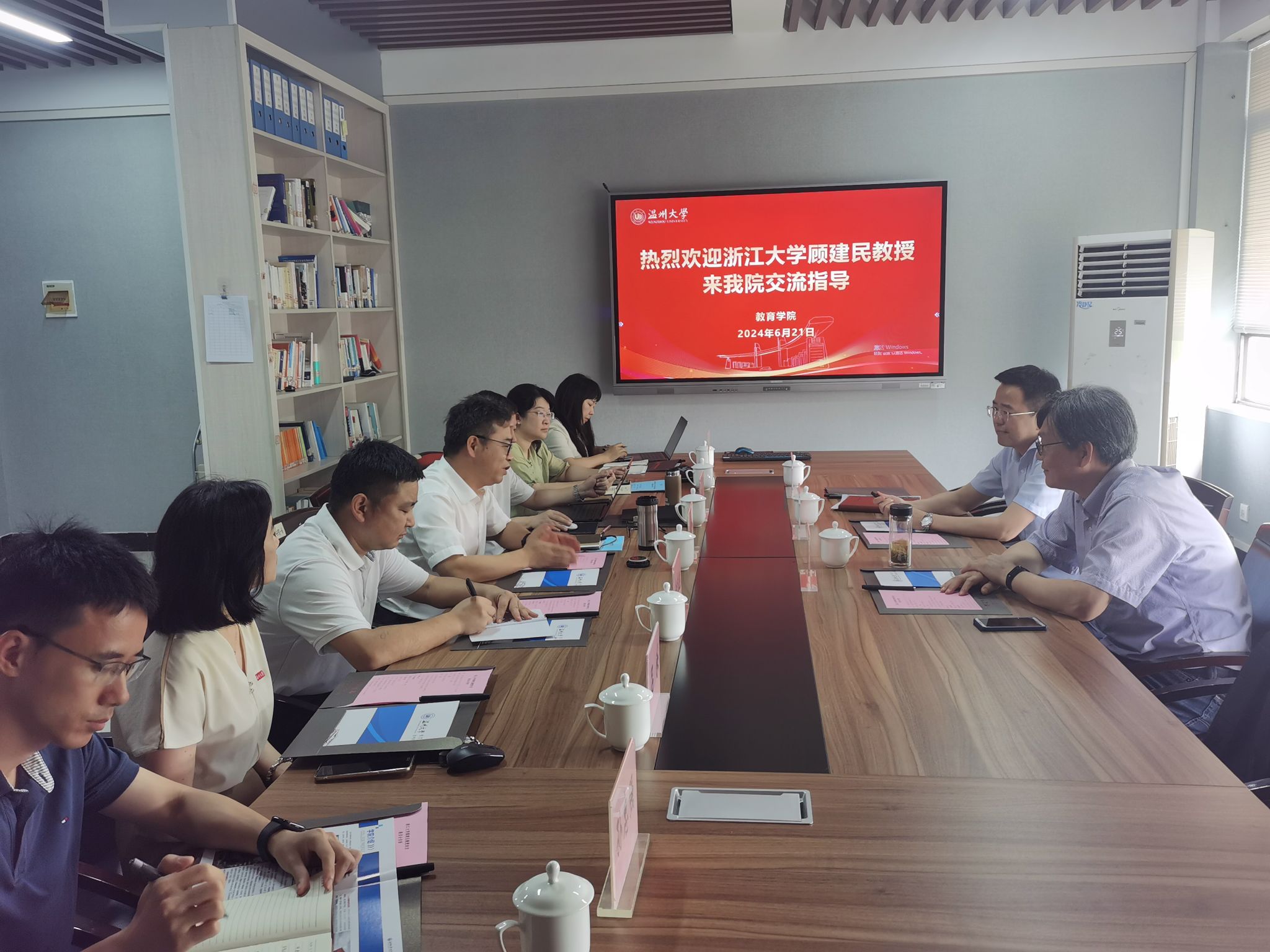 近日,学校公布教育学院新一届领导班子成员。为加强新领导班子凝聚力建设,带领学院更快更好发展,6月21日上午,学院特邀浙江大学教育学院原院长顾建民教授来我院交流指导。太阳集团tyc234cc副校长王尧骏、教育学院全体领导班子出席座谈会。