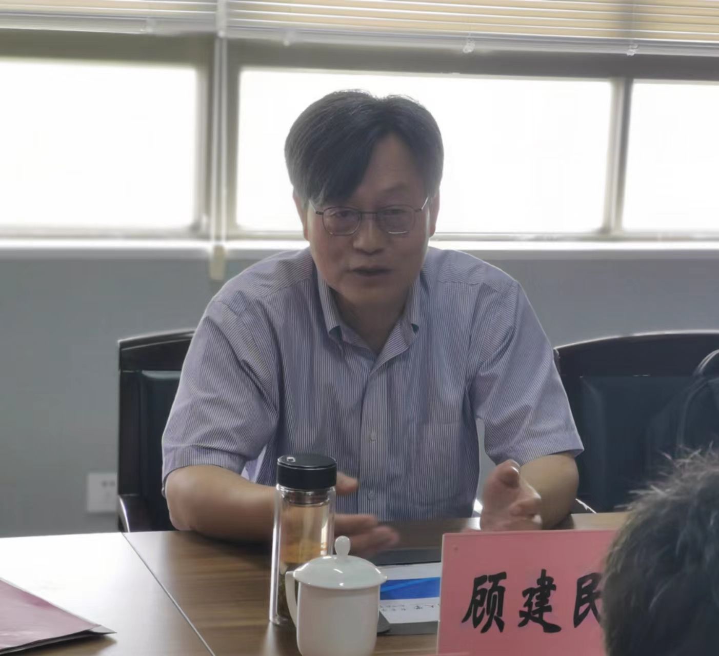 李长吉院长向顾建民教授介绍了学院的整体情况和近年来学院在人才培养、专业发展、学科建设等方面取得的成绩,并就学院发展过程中遇到的困难与瓶颈向顾建民教授进行了咨询请教。