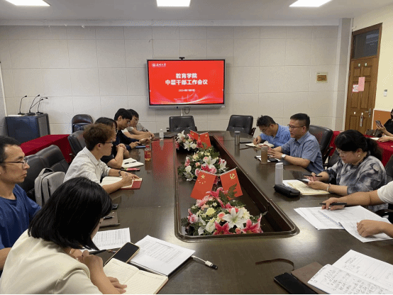 7月8日上午,教育学院在9A410会议室召开中层干部工作会议学院新一届中层干部任前集体谈话会。学院领导班子、各系(中心)班子、科室负责人参加会议。会议由学院党委书记张敏主持。