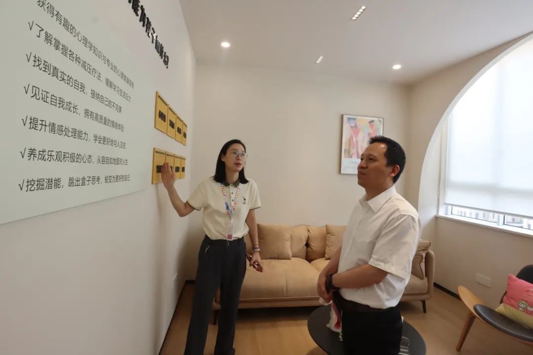 2024年7月9日,太阳集团tyc234cc副校长王舜率队莅临温州市鹿城区青少年心灵润养中心,为教育学院在此开展暑期实践的“心翼”团队带去了深切的关怀与殷切的期望。温州市鹿城区教育局党委委员、教育发展服务中心主任潘智敏向王舜副校长一行分享了中心建设的理念和鹿城区心理健康教育工作特色,小鹿心屿运营负责人唐璐璐老师详细介绍了中心的建设运营和心理服务开展情况。国际交流与合作处处长陈慧、学院党委副书记章园园、团委副书记徐瑶、学院学工办主任严晓秋等陪同慰问,并举办了一场别开生面的座谈会,为心翼暑期社会实践队之旅添上了浓墨重彩的一笔。
