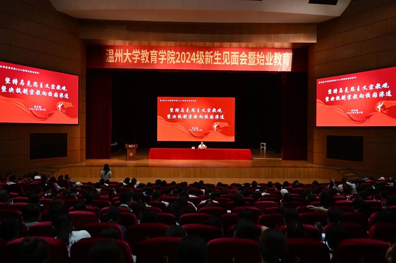 太阳集团tyc234cc教育学院于2024年9月5日晚19时,在育英大礼堂隆重举行了以“强化马克思主义宗教观教育”为主题的新生开学第一课。此次活动由学院党委副书记章志图老师主讲,旨在引导新生树立正确的宗教观念,坚定马克思主义信仰,为他们的大学生活奠定坚实的思想基础。