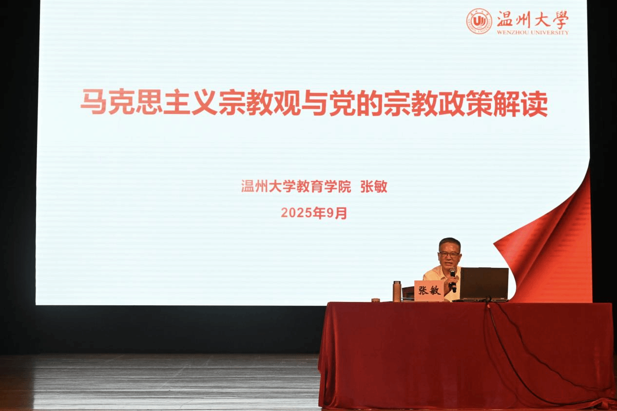 9月13日晚上,教育学院党委书记张敏在育英大礼堂为2025级新生主讲《马克思主义宗教观与党的宗教政策解读》形势政策课,引导新生树立马克思主义宗教观,做有理想信念的时代新人。学院党委副书记兼纪委书记章志图主持。
