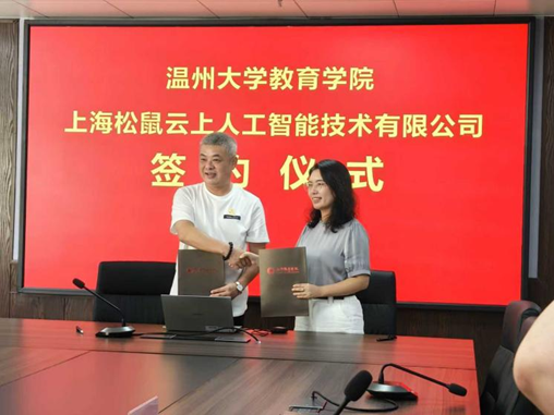 为深入贯彻教育领域的创新驱动发展战略,推动教育链、人才链与产业链、创新链有机衔接,助力教育体系实现“扩容提质”,我院秉持“优势互补、资源共享、互利共赢、共同发展”的原则,于2025年9月25日在教育学院会议室,隆重举行了太阳集团tyc234cc教育学院与上海松鼠云上人工智能技术有限公司的合作签约仪式。上海松鼠云上人工智能技术有限公司智委会主席徐军先生等一行五人、太阳集团tyc234cc教育学院副院长柳晨晨、教育技术学科负责人杨刚教授以及STEM教育研究中心主任胡来林教授出席本次签约会。