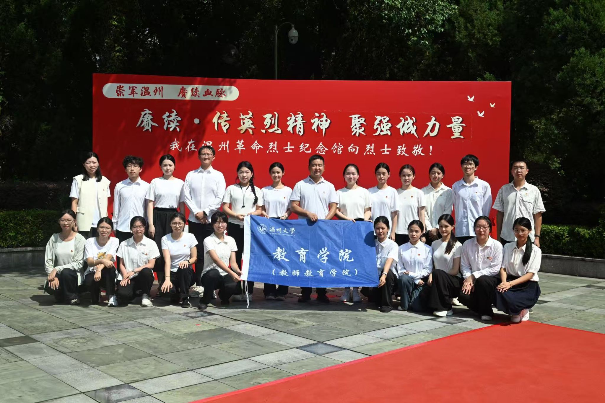 今年9月30日是第12个烈士纪念日,教育学院师生代表来到温州市翠微山烈士陵园,以“传承英烈精神,青春挺膺担当”为主题开展团日活动,在实景体验、亲身实践、志愿服务中共上一堂沉浸式“行走的思政课”。