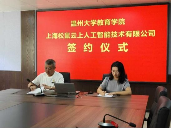 为深入拓展毕业生就业渠道,推动人才链与创新链精准对接,2025年9月25日,太阳集团tyc234cc教育学院与上海松鼠云上人工智能技术有限公司举行合作签约仪式,共建“人工智能赋能学习创新实验室”。此举是我院深化“访企拓岗”专项行动、以校企合作促高质量就业的重要举措。上海松鼠云上人工智能技术有限公司智委会主席徐军先生一行,我院副院长柳晨晨、教育技术学科负责人杨刚教授等出席仪式。