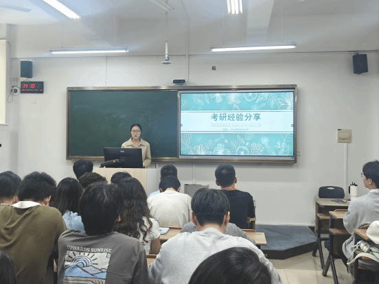 在朋辈分享环节,宋慧健学长从策略与心态两方面展开分析,梳理考研的内外部动机,分享公共课备考与情绪管理方法,并以“动机要正、规划要早、执行要狠、心态要稳”十六字箴言勉励在场同学。张心怡学姐则结合自身备考经验,详细介绍了“择校五步法”与复习时间规划,鼓励大家理性决策、积极行动,“不因畏惧或懈怠而错过人生的更多可能”。