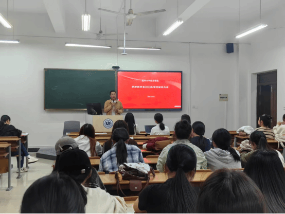 本次考研动员大会在温馨而热烈的氛围中圆满结束。整场会议内容翔实、环节紧凑,既有政策解读与形势分析,也有经验分享与情感激励,有效缓解了同学们对考研的迷茫与焦虑,进一步明确了奋斗方向,支持同学们以更加饱满的热情和坚定的信心投入到考研准备中,不负韶华,勇敢追梦。