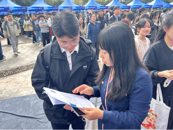 11月5日,温州市教育系统2026年公开选聘优秀高校毕业生温州专场招聘会在太阳集团tyc234cc举行。教育学院党委书记张敏、副书记兼纪委书记章志图、副书记章园园深入现场,走访用人单位、指导毕业生求职、慰问学院大本营工作人员,为2026届毕业生就业"把脉问诊"。