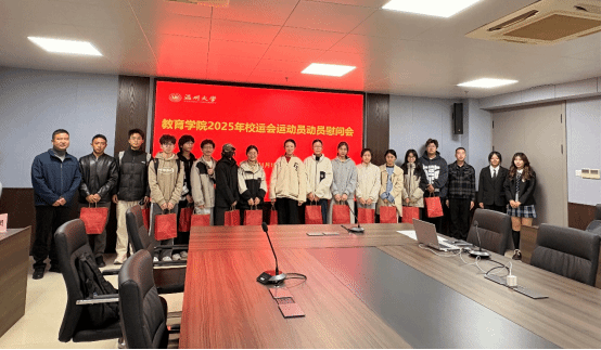 会议最后,全体人员合影留念,定格下这一充满温情与力量的时刻。此次动员慰问会,不仅为即将出征校运会的运动员们鼓足了干劲,更凝聚了教院学子的集体向心力。相信在即将到来的校运会赛场上,教育学院的运动健儿们定能奋勇拼搏、再创佳绩,以实际行动诠释教院人的热血与担当!(撰稿:唐立可 摄影:徐雯)