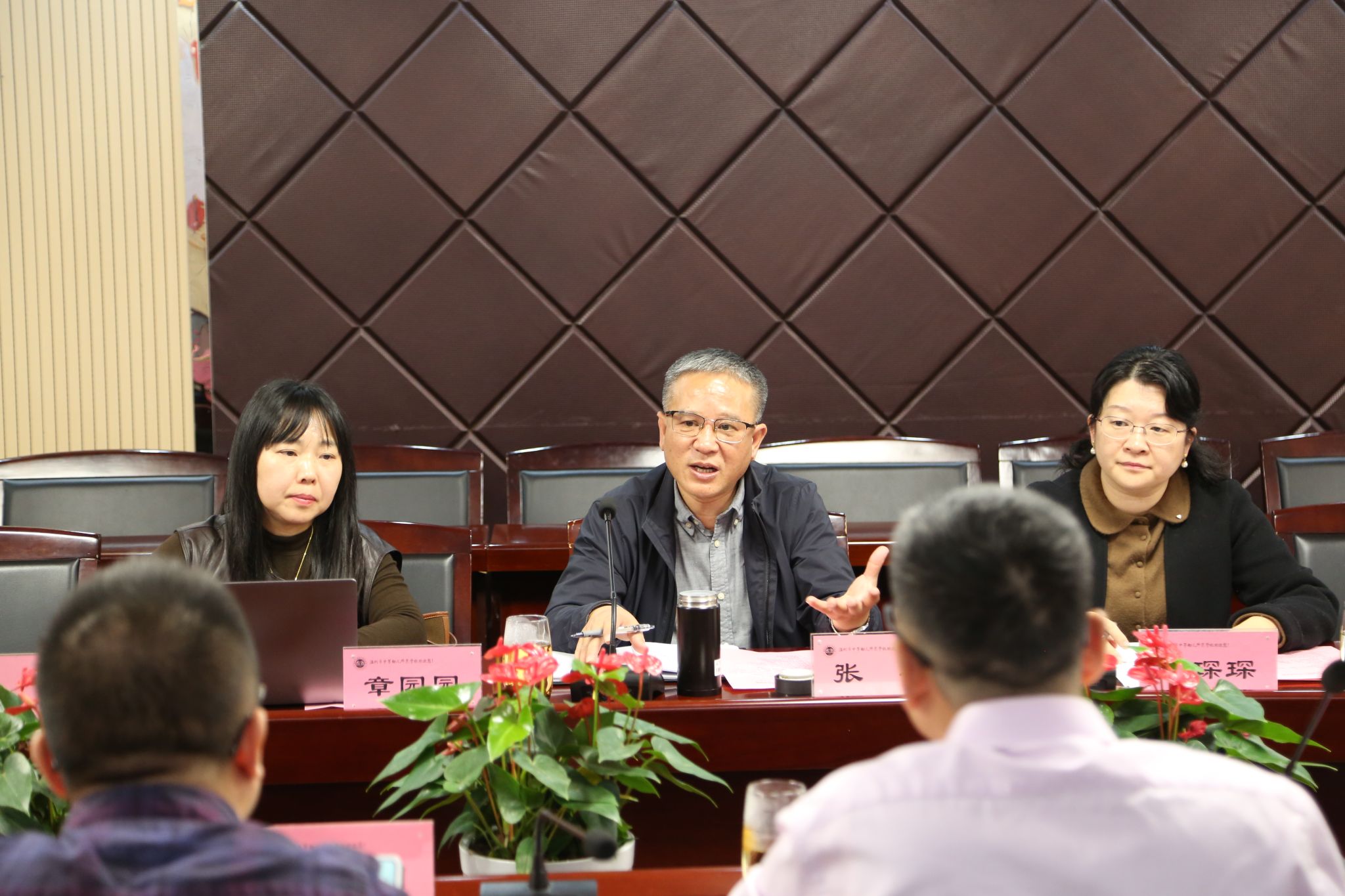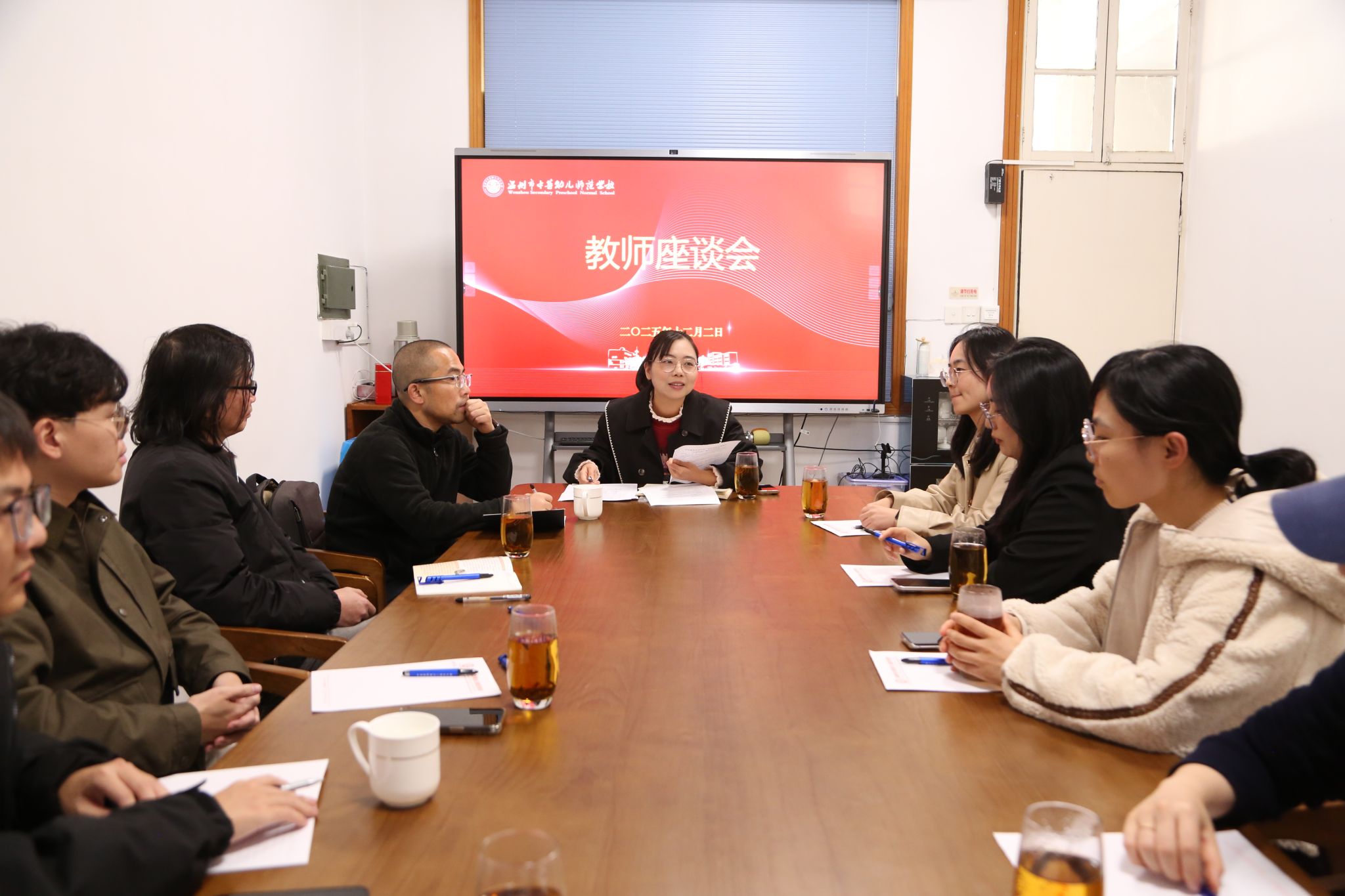 首先,召开了预备会议,温幼师蒋高烈书记致欢迎词,教育学院林琛琛副院长介绍此次调研主题与总体安排。随后分成四组,同步开展学生意识形态协同管控专题会议、教师座谈会、学生座谈会、中本一体化人才培养方案及课程材料专项检查。