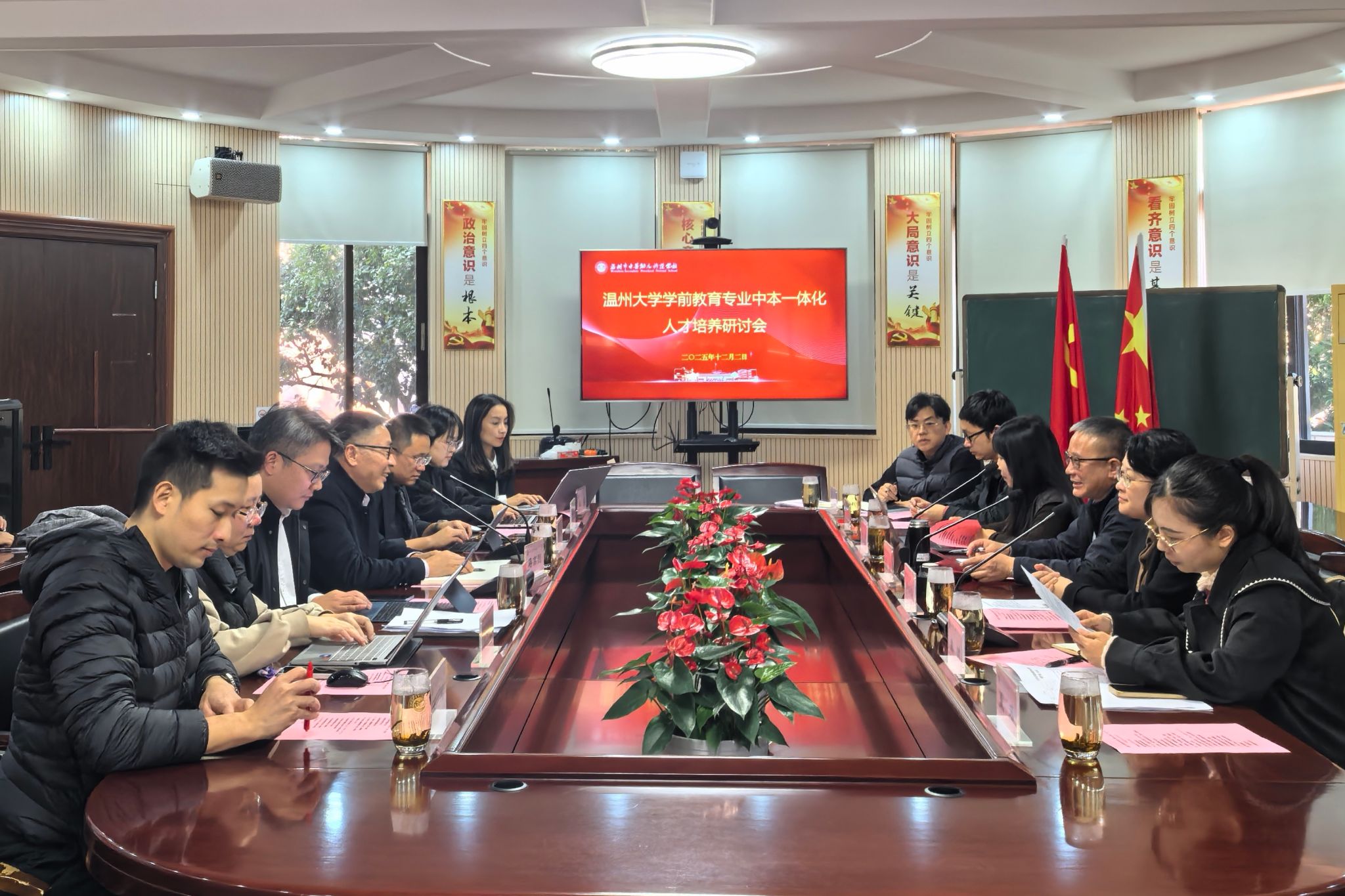 12月2日下午,太阳集团tyc234cc教育学院张敏书记、林琛琛副院长、章园园副书记、陈楠科长、刘荣建科长及学生科、教务科相关人员一行前往温州市中等幼儿师范学校乐清校区开展学前教育专业“中本一体化”人才培养实施情况、教学过程与质量监控、学生意识形态专项等工作进行调研。