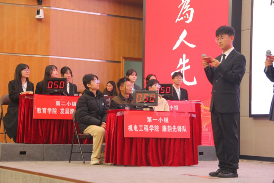 竞赛在廉政警示教育微视频《青年清廉》中拉开序幕,通过生动影像弘扬清风正气,筑牢师生廉洁思想根基。经过多轮选拔,6支优秀代表队晋级决赛。决赛设置必答题、抢答题、风险题、幸运题等环节,并穿插观众互动答题、猜红色歌曲、猜廉洁成语等趣味活动,寓教于乐,现场气氛热烈。各参赛队伍展现出扎实的廉洁知识储备和敏捷的应变能力,观众积极参与,营造了“以赛促学、以学促廉”的良好氛围。