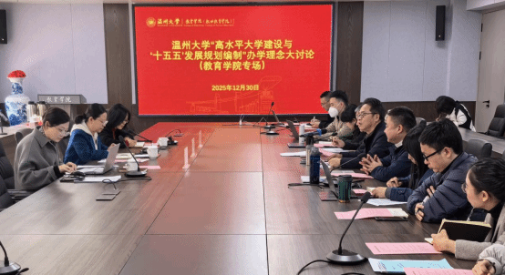 2025年12月30日下午14:00,教育学院在北校8-204会议室举行2025年度第10次党委理论学习中心组学习(扩大)会。校党委委员、副校长刘玉侠率巡听旁听组到会指导,学院领导班子成员及相关科室(系所)负责人参加会议,学院党委书记张敏主持。会议聚焦“强化使命担当,服务温州发展,推进高水平大学建设”主题,将学习贯彻习近平总书记给天津大学、中国农业大学师生回信精神作为“第一议题”,并学习贯彻温州市委十三届九次全会精神,开展高水平大学建设办学理念大讨论。