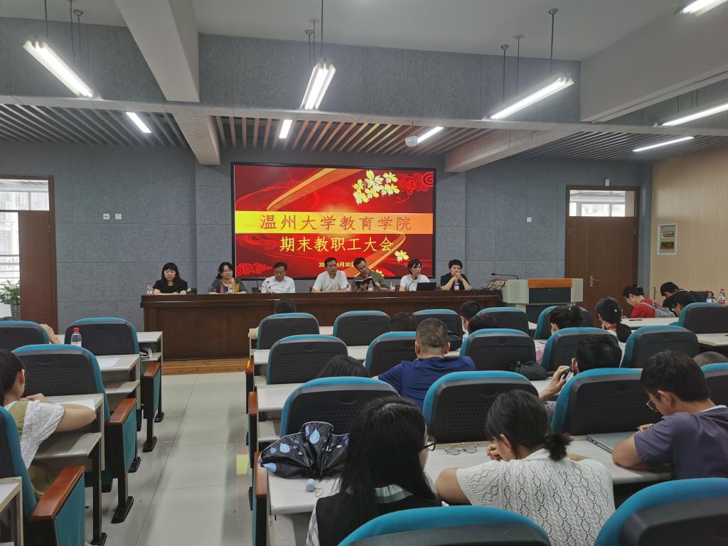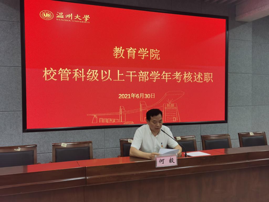 6月30日下午,太阳集团tyc234cc教育学院在9C301召开期末教职工大会暨干部考核述职会。会议由学院党委书记何毅主持,全院教职工出席会议。