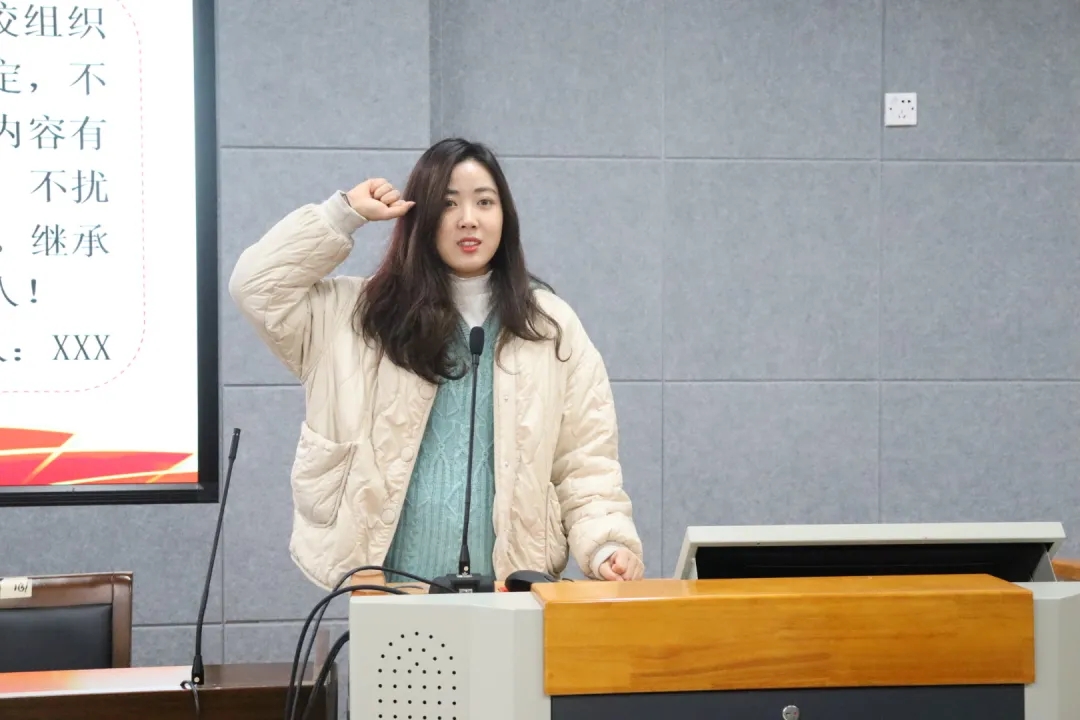 在学生代表余欣媛的带领下,与会学生一同在诚信考试承诺书上签名,并进行郑重宣誓。