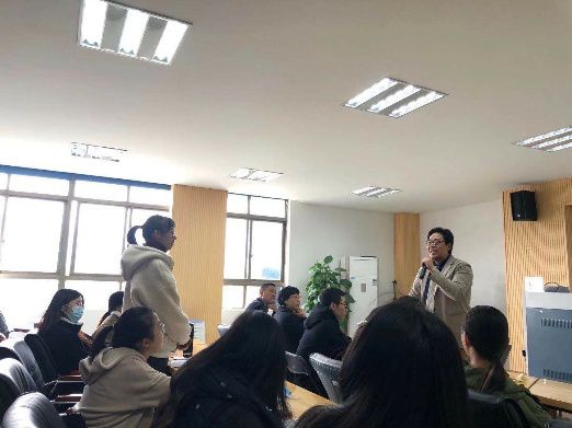 讲座过程中,张博士也经常以学生关注的问题来与学生进行互动,如“你打算去国外考研吗?”、“你最近关注的问题是什么?”等,从这些问题出发,结合苏格拉底对话法,告诉学生应该怎样正确解读。张博士也以一个“挫折”的案例,告诉以后要当老师的学生说,要与学生沟通,可以私下好好交流,多次多频率地与学生沟通,因为苏格拉底对话法不是一次就可以教学成功的,因此要适当转换,苏格拉底法不会让学生觉得自己是配角。