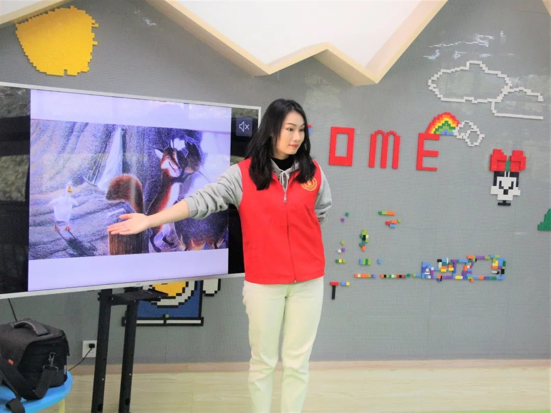 为了让孩子们切身体验游戏的快乐、培养大家的规则意识,志愿者与孩子们一起玩了“木头人”的游戏。轻松有趣的游戏让孩子们在欢声笑语中拉近了彼此间的距离。在志愿者的引导下,孩子们从绘本中读到鸭子和天鹅比赛时的认真和坚持不懈,而故事的暖心结尾也让孩子们懂得遵守规则很重要,但学会保护自己、保护朋友更重要。活泼可爱的绘画风格、跌宕起伏的故事情节让孩子们明白了友谊的珍贵。滑稽搞笑的绘本角色、亲密温馨的课堂互动,成为了初冬里最温暖的色彩。