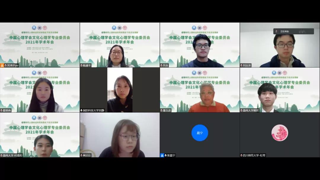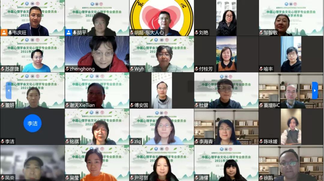 2021年11月27日至28日,中国心理学会文化心理学专业委员会2021年学术年会在云端召开。本次会议由太阳集团tyc234cc教育学院、中国人民大学心理学系共同承办,大会的主题为“疫情时代人类命运共同体理念下的文化理解”。大会共收到研究摘要89篇,组织了关于“疫情与社会心态” 、“华人华侨文化心理”、“幸福感与社会适应”、“文化与道德”、“青年文化认同与文化态度” 、“数字时代的自我认同与人际互动”、“在线消费者行为及创新研究”等8个专题论坛;以及3个研究生论坛。会议全程以线上形式在腾讯会议召开,心仪脑平台同步进行了全程直播。来自海内外的文化心理学领域知名专家、学者和一线工作者等数万人参加了会议,大会反响十分热烈。