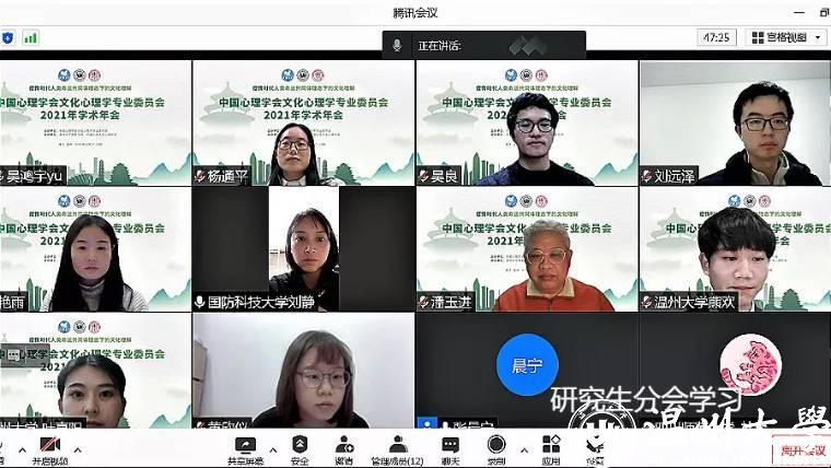 本次大会紧扣“疫情时代人类命运共同体理念下的文化理解”议题,既有观念引领、价值反思,又有实证研究、支持策略。会议设置了一个主视频会议室及各视频分会场,涵盖主旨演讲、专题论坛、研究生论坛、中国心理学会文化心理学专业委员会工作会议等环节。论坛聚焦“大数据时代的文化心理学”“新冠病毒肺炎疫情下的风险共同体建构”“文化心理变迁的社会阶层视角”等议题,展开深入探讨与交流,积极探索时代新命题,展望文化心理学相关领域学术研究的新发展。