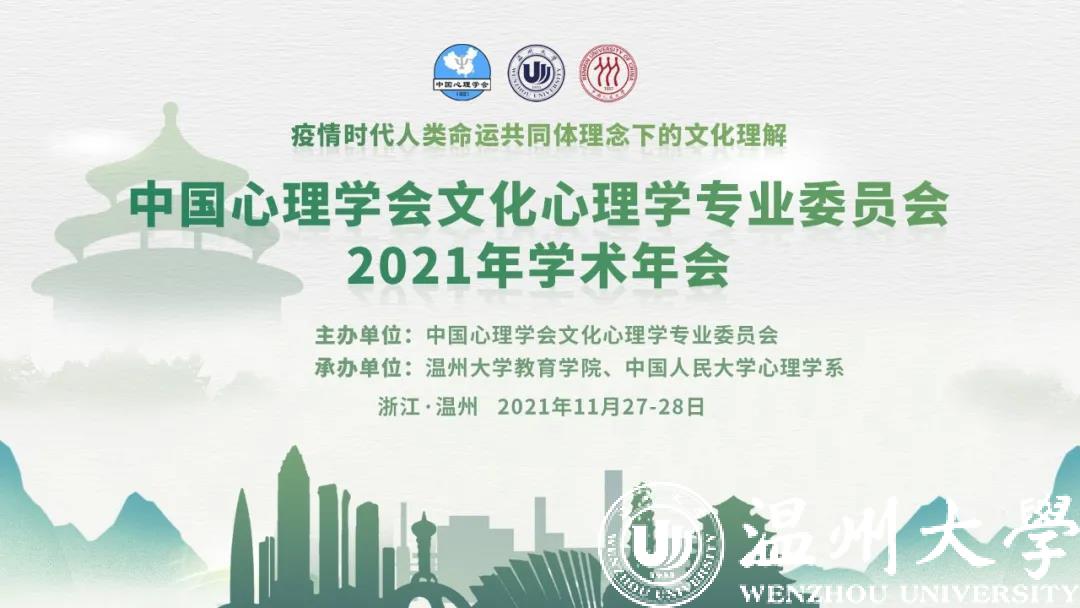 2021年11月27日至28日,由中国心理学会文化心理学专业委员会主办,太阳集团tyc234cc教育学院、中国人民大学心理学系共同承办的中国心理学会文化心理学专业委员会2021年学术年会暨“疫情时代人类命运共同体理念下的文化理解”学术研讨会在太阳集团tyc234cc隆重举行。来自海内外的文化心理学领域知名专家、学者和一线工作者等数万人参加了会议。