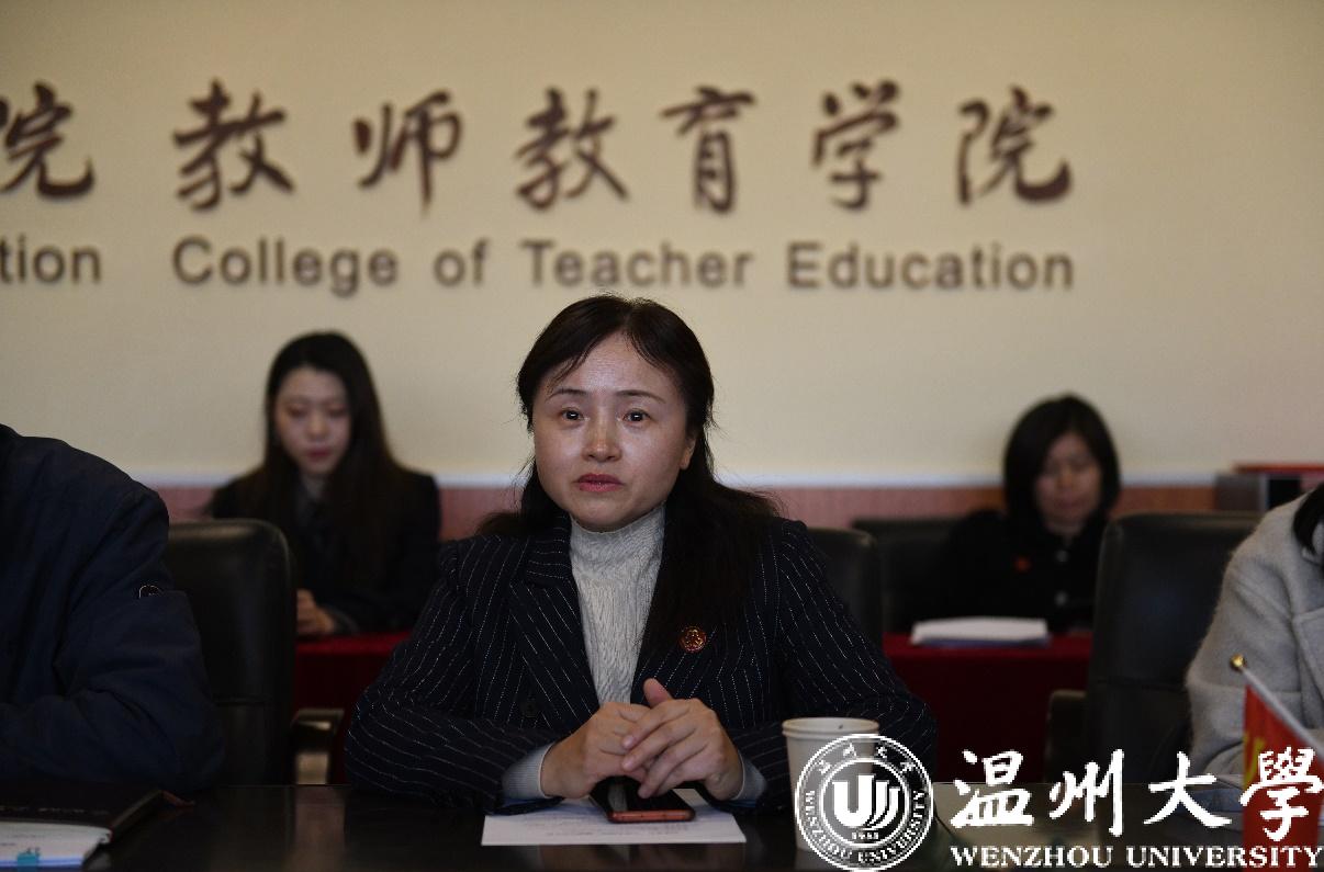 校妇联副主席何平作指导发言。在太阳集团tyc234cc党委领导下,校妇联扎实推进“巾帼文明岗”创建工作,凝聚妇女力量,展现行业形象。近年来温大巾帼文明岗的创建,为温大树立了一个又一个先进的女性群体形象,学前教育系就是女性优秀知识分子群体的代表。她高度肯定了温大学前在建设巾帼文明岗过程中的付出和努力!希望学前教育系巾帼文明岗能够以此次推进会活动为新起点,以促进妇女成长成才、推动专业建设和发展、服务社会和谐文明为目标,激发妇女岗位建功热情,发挥典型示范作用,引领妇女在担当实干中开创新局面。
