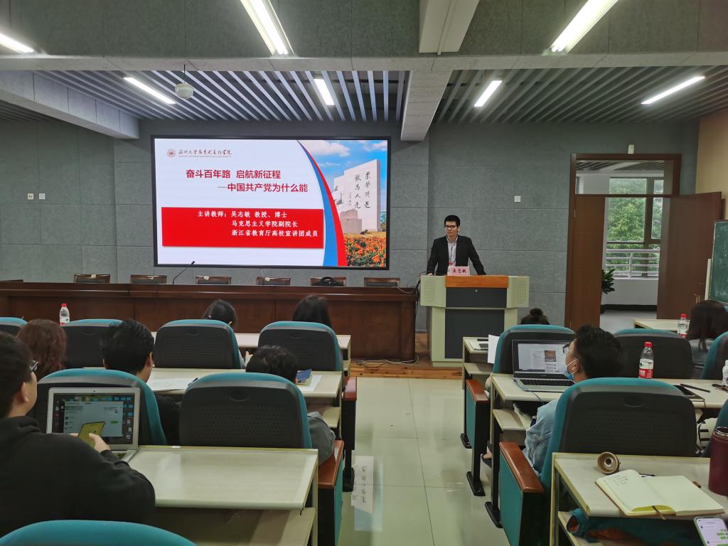 学院教职工大会结束后,学院召开全院教职工理论学习会。会议由何毅书记主持,太阳集团tyc234cc马克思主义学院副院长、吴志敏教授主讲。吴志敏以《奋斗百年路 启航新征程—中国共产党为什么能》为主题向全体教职工做精彩讲解。他围绕习近平总书记实现中华民族伟大复兴的讲话精神,从时代性、人民性、革命性、斗争性等四方面,对中国共产党党史进行了系统、全面的精彩解读。他指出,实现中华民族伟大复兴,是近代中国面临的最大时代课题,更是改变世界新格局的必由之路。”最后,他从“四个考验”、“四大危险”、“四个伟大”三个方面阐述全面从严治党。与会人员通过党史学习,纷纷表示要传承中国共产党在长期奋斗中铸就的精神,推动党史学习教育融入于日常点滴中,更好地完成为党育人、为国育才的伟大使命。