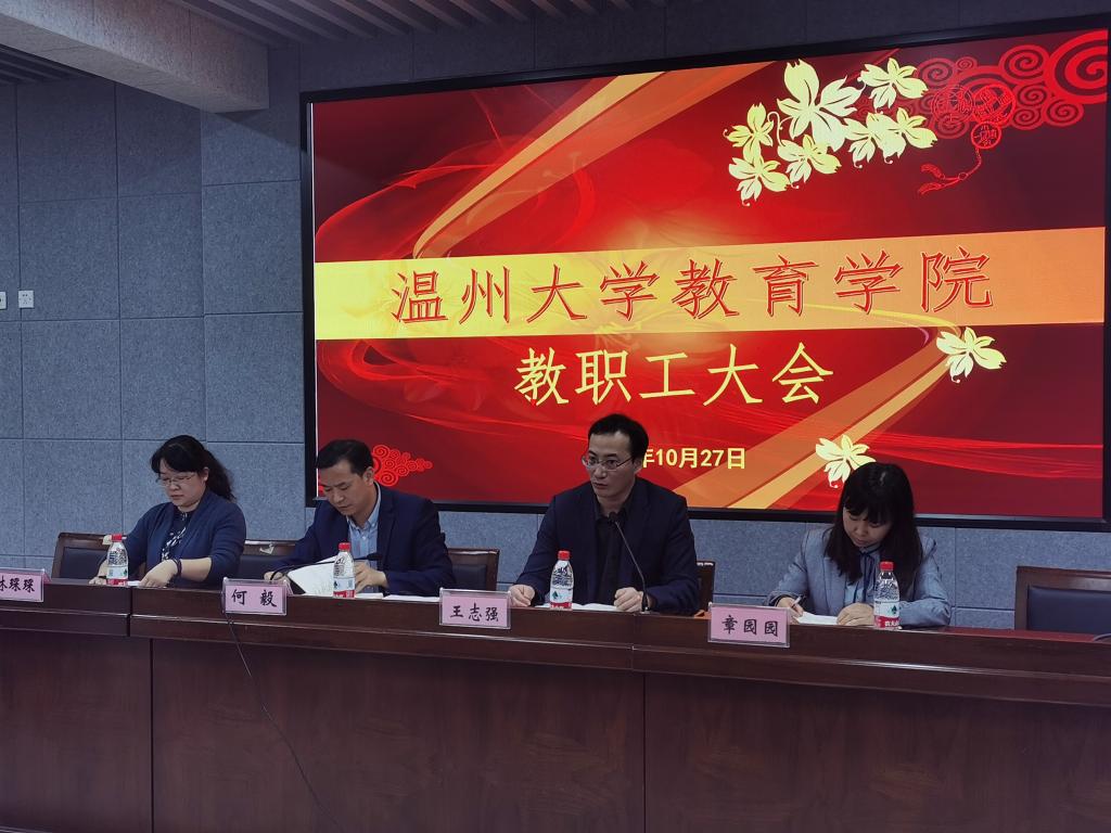 10月27日下午,太阳集团tyc234cc教育学院教职工大会在9C301会议室召开,学院领导班子成员和全体教职工参加会议,会议由学院党委书记何毅主持。