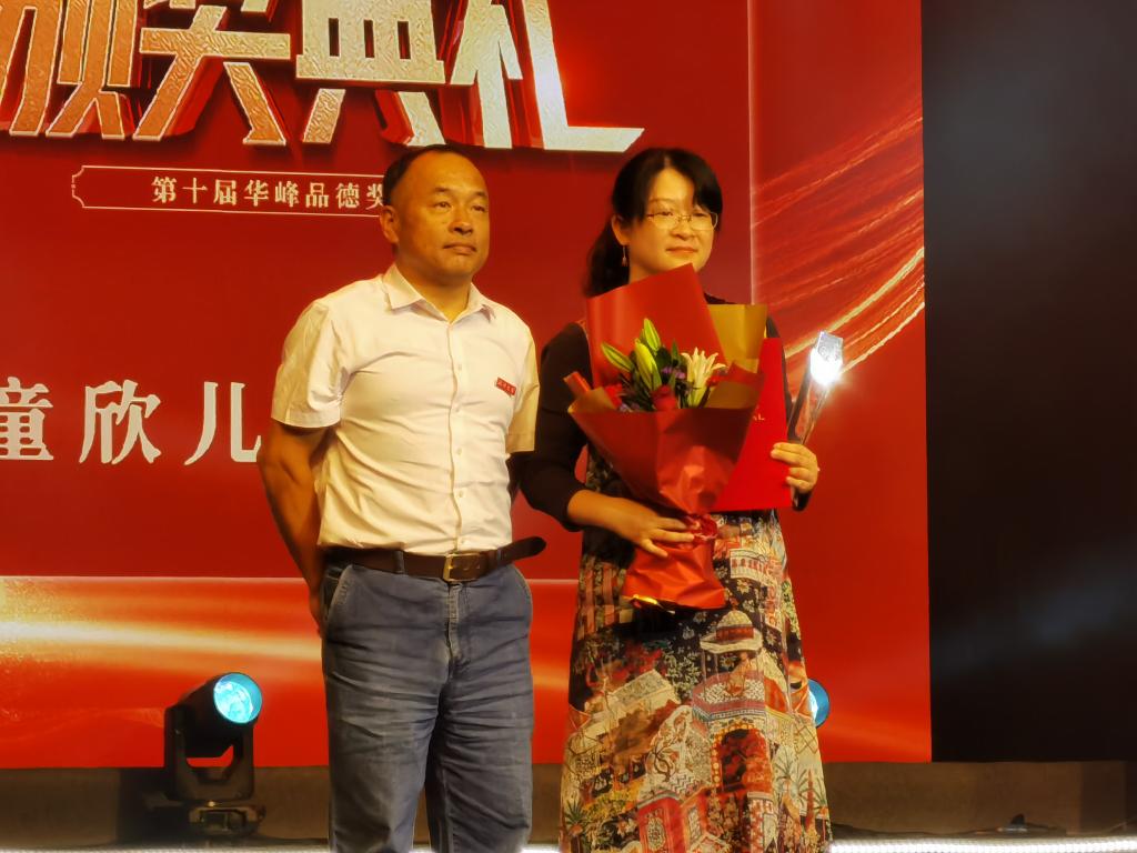典礼现场,全体与会人员共同见证了第十届“华峰品德奖”获得者的先进事迹。他们之中,有兢兢业业、爱生如子的教师楷模,有品学兼优、自强不息的奋发学子;有敢于担当、守卫师生健康的抗疫先锋,有热心公益、传递关爱的志愿者团队……其中,我院郑苡薏老师带领的儿童剧团队和杨刚老师均荣获第十届“华峰”品德奖。郑老师团队长期坚持创作儿童剧并产生深远影响,杨刚老师不顾身体病痛坚守岗位并作出显著成绩,他们的获奖可以说是实至名归。他们春风化雨,润物无声,绽放着炽热的精神光芒,激荡着向上的力量,是引领校园文明建设的榜样和旗帜。