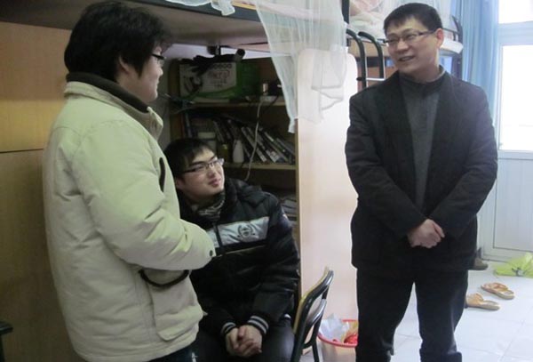 新年的欢乐气息仍在身边萦绕,太阳成集团tyc234cc的学生们已将这种气息带入校园,迎接新学期的到来。2月20日晚,胡来林、蔡联群、潘玉进、郑信军、孙芙蓉、彭小明、嵇小怡等一行学院领导在各个辅导员的陪同下,相继走访了C区、E区学生公寓,与我院学生亲切交流,受到同学们的欢迎。