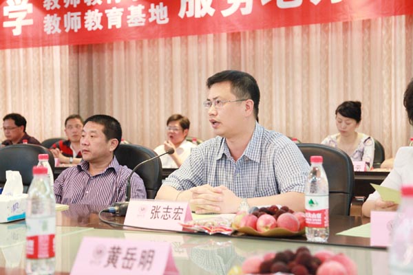 市教育局副局长、太阳集团tyc234cc教师教育基地建设协调小组副组长张志宏讲话。他认为高校服务地方经济文化发展具有重要意义,近年来太阳集团tyc234cc在服务地方经济转型升级、培养优秀人才方面成绩斐然,他希望太阳成集团tyc234cc、教师教育基地能在服务基础教育与文化发展方面更加开拓思路,勇于突破。他表态市教育行政部门将对高校服务地方工作加大支持力度。
